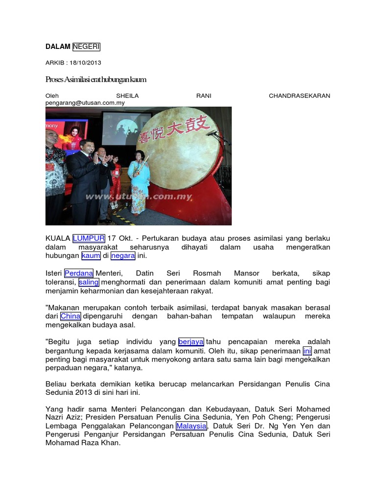 Makanan merupakan contoh terbaik asimilasi terdapat banyak masakan berasal dari China dipengaruhi dengan bahan-bahan tempatan walaupun mereka mengekalkan budaya asal. Bagan disebut juga dengan diagram dan memiliki beberapa jenis yakni diagram garis diagram batang diagram lingkaran dan diagram gambar. Kata lampiran tidak disingkat seperti lamp.